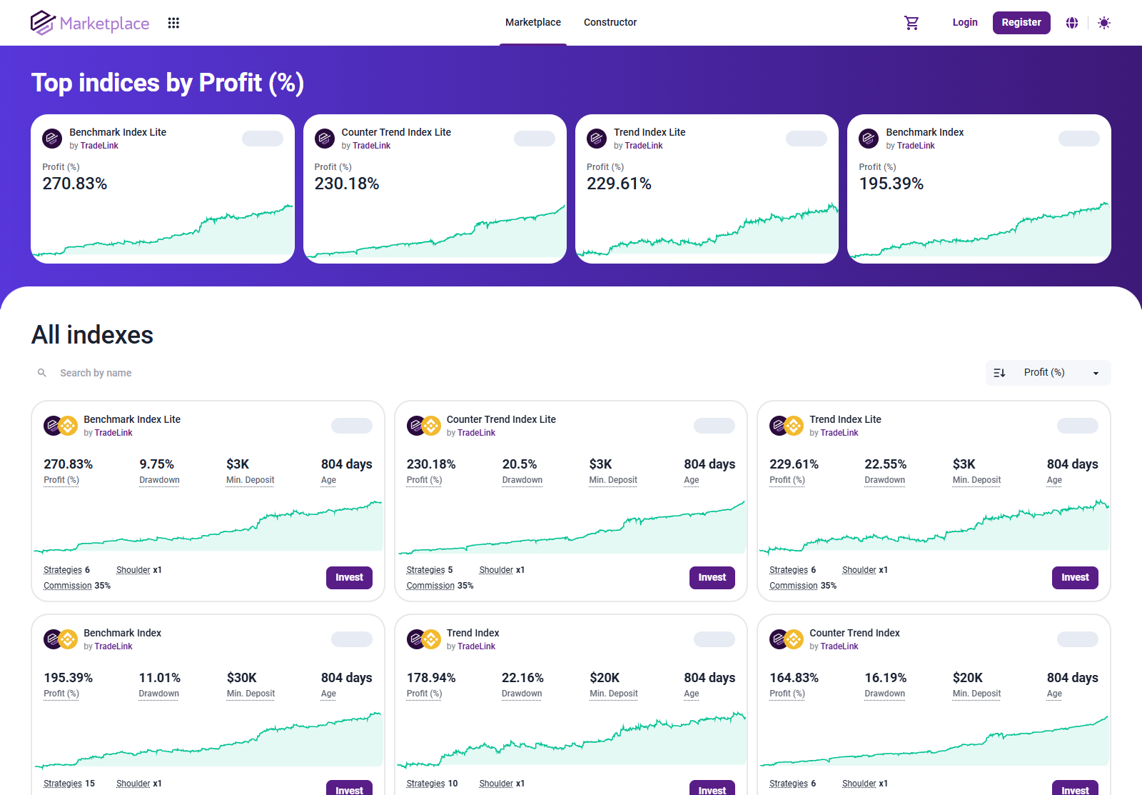 TradeLink indices represent a refined selection of strategies, ensuring quality, consistency, and growth.